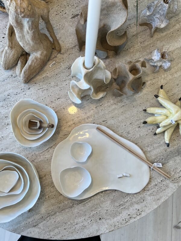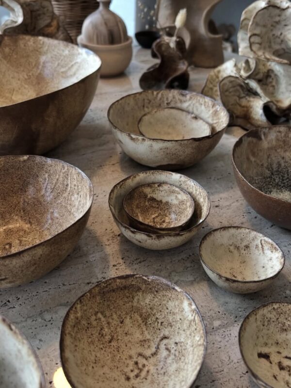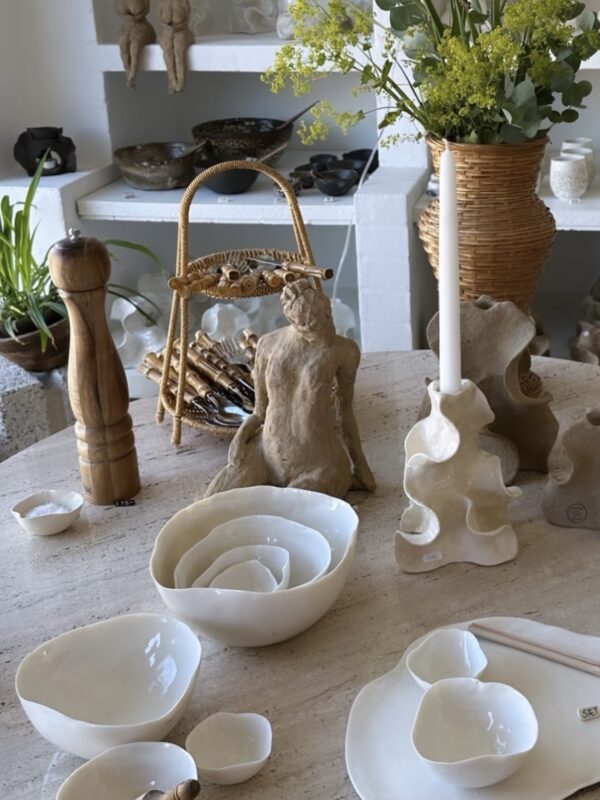 Leder du efter keramik skåle, der både kan bruges til hverdag og som små kunstværker på bordet? Hos Atelier i Lejet finder du håndlavede skåle fra eget keramik værksted – alt fra elegante porcelænsskåle til skulpturelle former med dyb tekstur. Kategorien rummer både funktionelle hverdagsmodeller og markante centerpiece-stykker, så du kan samle et personligt udvalg til køkken og servering.