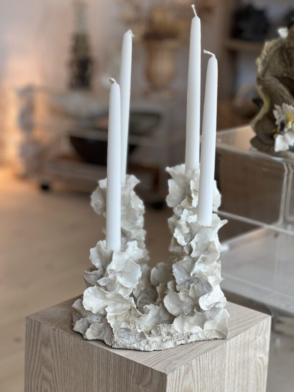 Skulptur lysestage – gotisk form i porcelæn | havskum/koral