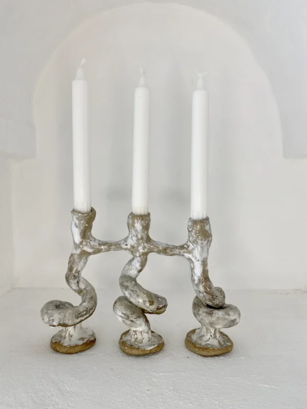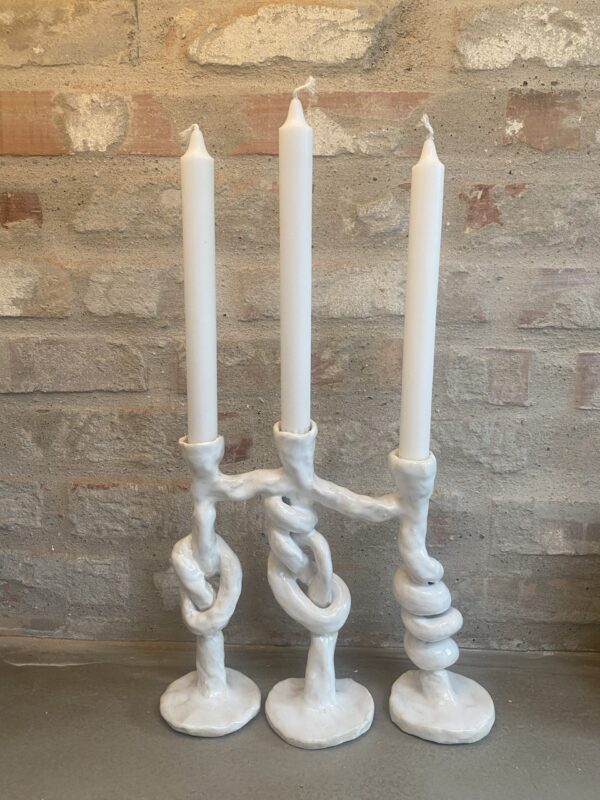 Trearmet Lysestage – Skulptur ler med hvid glasur